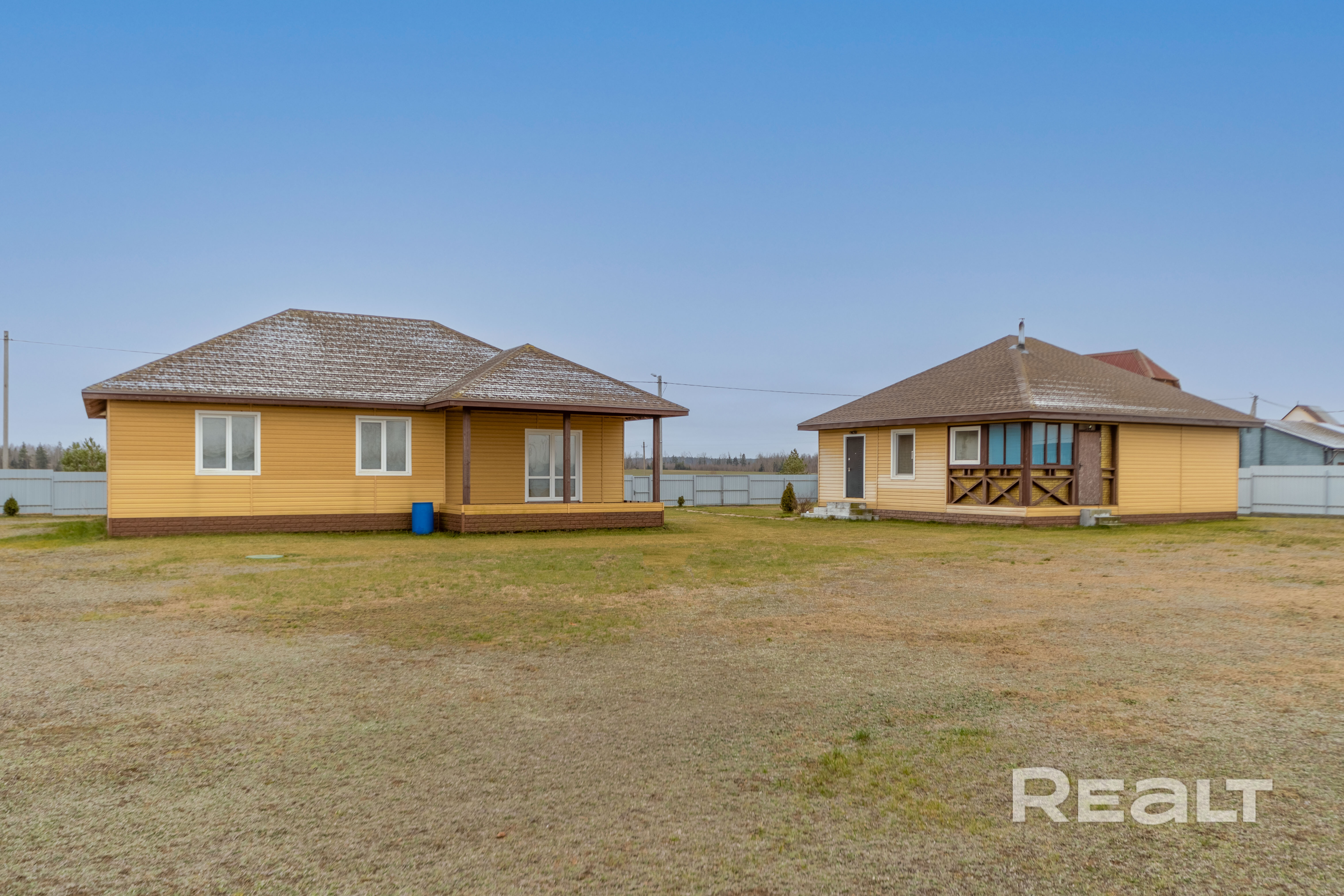 На участке расположены два современных одноэтажных строения, позволяющие разместить две семьи рядом или организовать просторное жилое пространство: