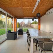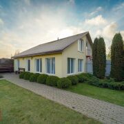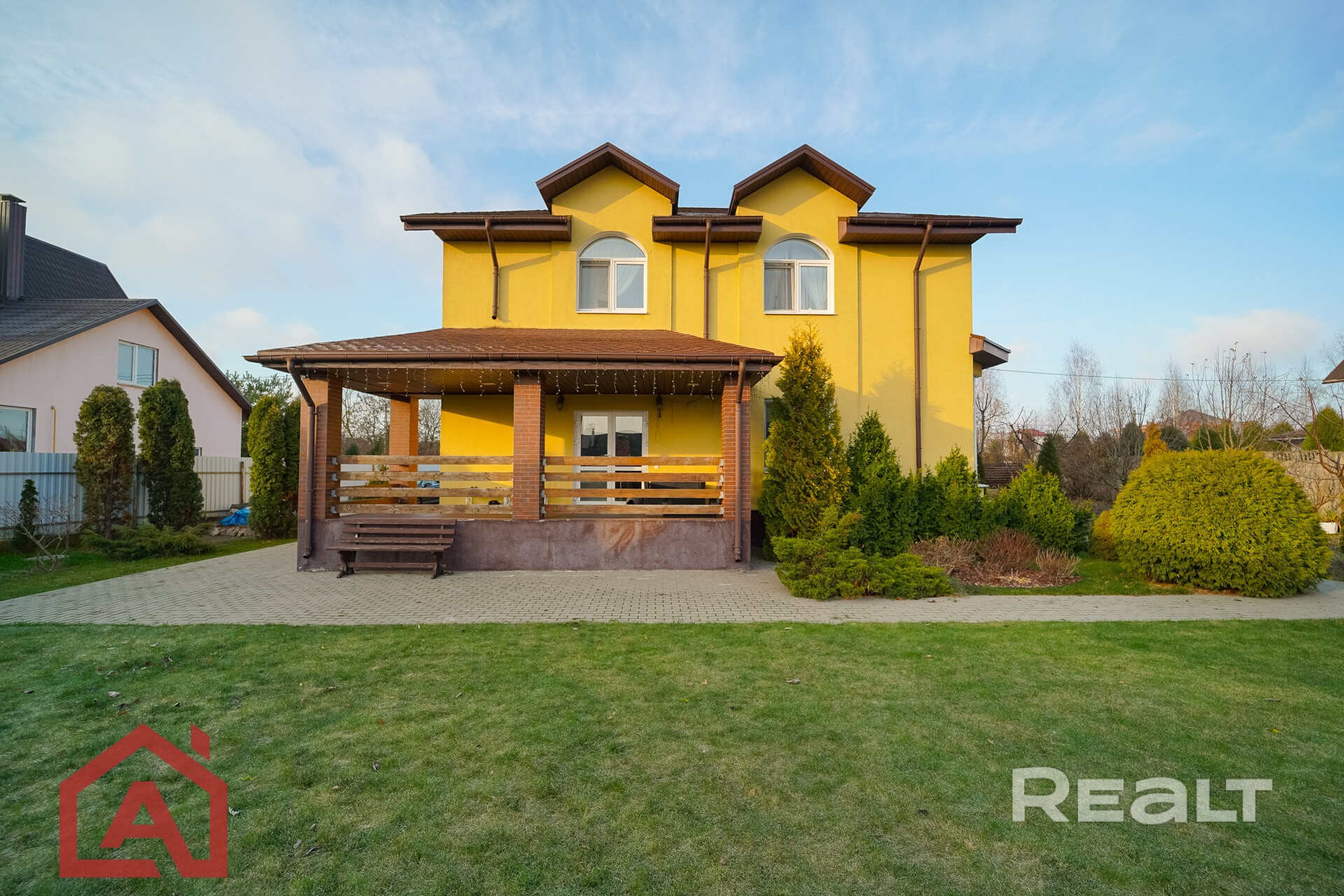 Материалы и конструкция: дом построен на ленточном фундаменте из керамзитобетонных блоков, утеплен и облицован качественными материалами. Кровля выполнена из мягкой черепицы, что обеспечивает надежность и долговечность.