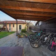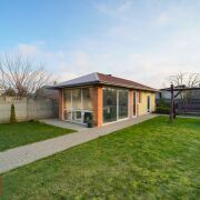 На участке расположен двухэтажный гостевой домик с баней, оснащённый всеми необходимыми коммуникациями, а также благоустроенная беседка для уютных семейных встреч и праздников на свежем воздухе.