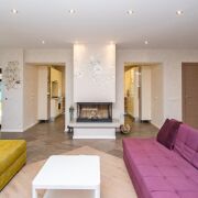 - Гостиная 47,5м2 с камином и мебелью и прямым выходом на террасу