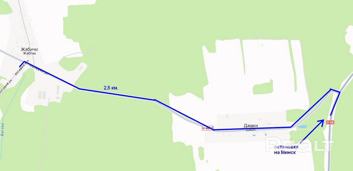 Линя электропередач и столб-на границе участка. Регулярно приезжает автолавка Евроопта и другие .