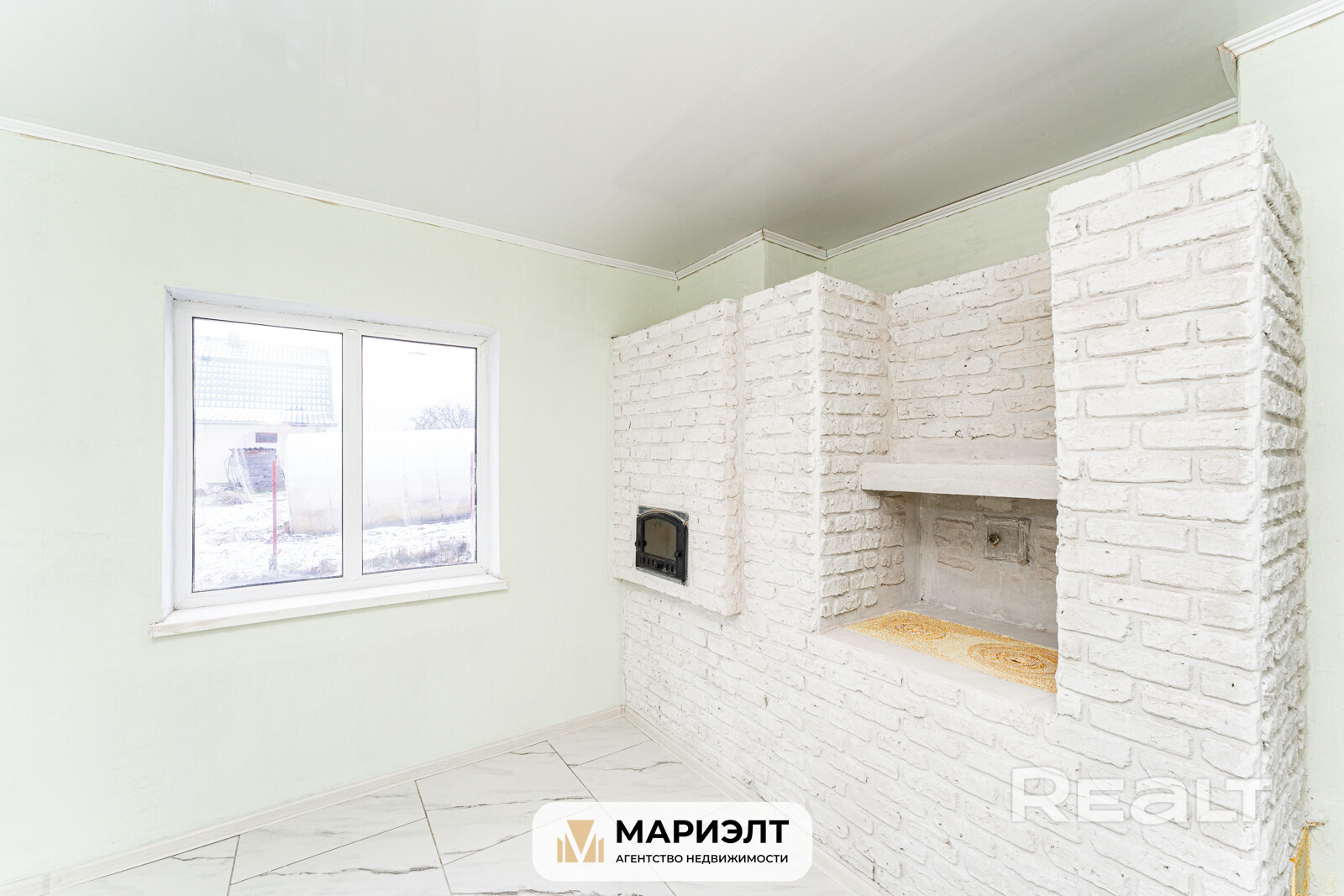 Комнаты на 1-м этаже: зал с камином – площадью 24,5 м2, жилая комната с круглым камином 11,4 м2, коридор 14,2