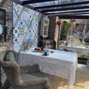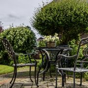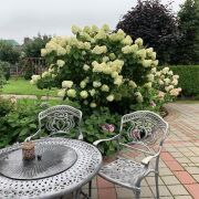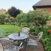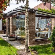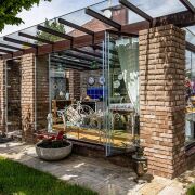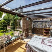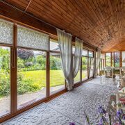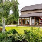 - терраса для отдыха с распашными панорамными окнами с видом на красивый сад.