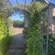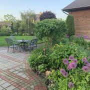 Участок 19 соток: ландшафтный дизайн с прекрасным садом с множеством плодовых деревьев, ягод, цветов, автоматическая система полива газона, территория огорожена, автоматические ворота, крытая парковка для двух авто, гараж. Отдельно стоящая беседка с итальянской печкой-духовкой, теплые полы, панорамные раздвижные окна, дорожки выложены тротуарной плиткой. Детская площадка. Тёплый курятник с зимним и летним вольером.