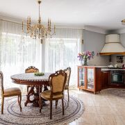 - просторная кухня-гостиная со столовой зоной и действующим камином;
