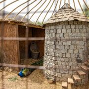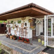 Также на участке есть второй гостевой дом из цельного бруса 22-24 см в диаметре, площадь дома 40 кв.м, предусмотрены полноценная кухня, санузел с душевой и жилая комната с камином.