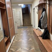 На первом этаже расположены кухня с кладовкой, гардеробная, топочная, ванная комната с душем и двумя туалетными комнатами, и две жилые комнаты.