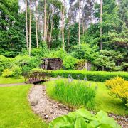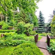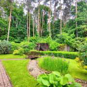- Свой выход в сосновый лес, детально продуманный ландшафтный дизайн участка. По участку протекает ручей с небольшим прудом, вода, проходя через систему очистки, подается и откачивается с помощью электронасоса.
