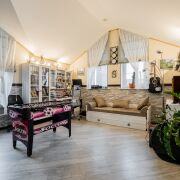 Рядом летняя кухня, снабженная коммуникациями, печью мангалом, печью на дровах, зоной отдыха