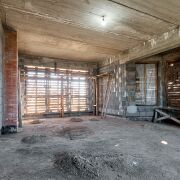 В доме частично установлены стеклопакеты. Засыпана песчаная подложка. Все готово для проведения внутренних строительных работ.