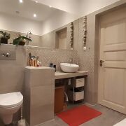 Левая половина дома требует внутренней отделки. Основные черновые работы сделаны: газ введен, все коммуникации разведены и дальнейший ремонт можно делать по своему вкусу. По договоренности собственник может оставить большое количество строительных материалов, сантехники и др..