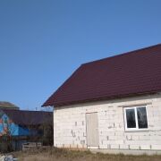 Строение из газосиликатных блоков, 1-этажное. Крыша - металлочерепица, окна-стеклопакеты ПВХ. Перегородки- газосиликатные, перекрытия - дерево. Фундамент-сваи, бетон.