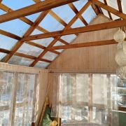 На участке имеется капитальная хозпостройка, которая включает : гараж (30 кв.м.),мастерскую, баню (29 кв. м.), мансарду (32 кв. м.) с комнатой отдыха и санузлом, погреб (21 кв. м.).