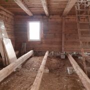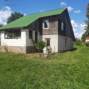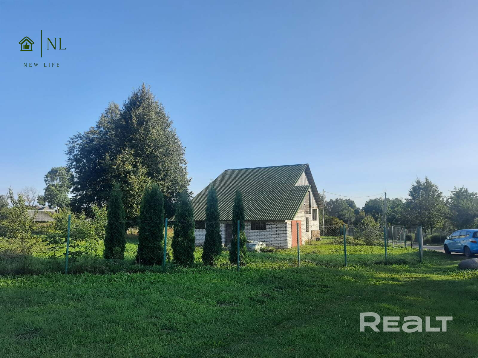 Первый этаж дома: деревянный брус + кирпич, второй этаж: деревянный щит, веранда из газосиликатных блоков, под верандой утеплённый, гидроизолированный погреб, крыша – шифер (новый), по всему дому новые пластиковые стеклопакеты, гараж – кирпич. Участок огорожен, к дому проведено электричество, заключён договор для подключения газа, центральный водопровод проходит на расстоянии 7 метров от угла дома. Посажен молодой сад. Хорошие соседи – местные жители, также много минчан-дачников.
