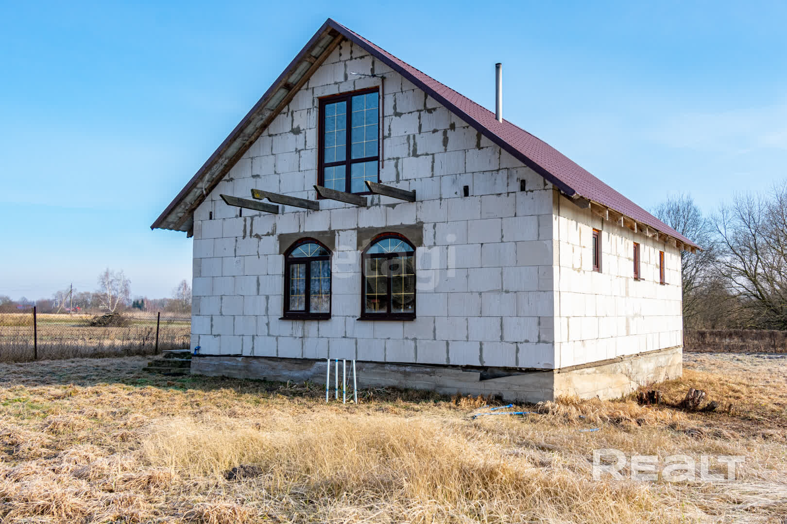 Дом находится в 30 км от МКАД в Слуцком направлении. Дом общей площадью 80 кв.м (только 1 этаж), запланирован и 2 этаж с выходом на балкон. расположен на участке 15.29 сотки. Сам участок ровный, прямоугольный. Хорошие подъездные пути - до участка проложено асфальтированное покрытие. Газ - центральный, электричество – есть, отопление - печное, санузел на улице. В д. Добринёво развита инфраструктура: рядом школа, детский садик, магазины. Дом располагается в водоохранной зоне, рядом находится лесной массив. Хорошее транспортное сообщение: до Минска можно доехать без проблем (курсируют маршрутное такси и пригородные автобусы).