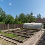 Участок огорожен забором по периметру, что обеспечивает приватность и безопасность.