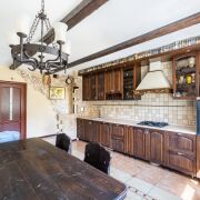 На первом этаже располагается гостиная, кухня и санузел. На втором - четыре спальни, гардеробная и санузел. Все комнаты светлые и комфортабельные. Потолки высокие. Лестница украшена авторской ковкой.