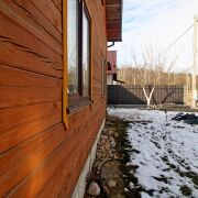 - Также залит мощный фундамент под баню 3.10 м. на 4.10 м., на котором временно построен дощатый сарай.