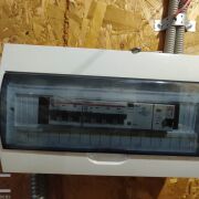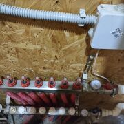 Отопление – 1 этаж водяной теплый пол от электрокотла (льготный тариф), второй этаж – электроконвекторы.
