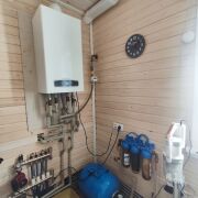 - Отопление на 1-м этаже реализовано в виде теплых полов, подогреваемых газовым котлом. На 2-м этаже радиаторы.
