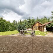 Площадь участка 12 соток в частной собственности. На участке расположены дом, баня с беседкой, навес. Участок огорожен забором, по границам участка множество насаждений, двое въездных ворот открываются с пульта (центральный для легкового авто, и боковой – для грузового в том числе).