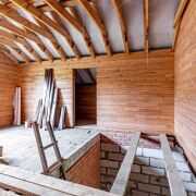- Стены – блок (оштукатурен, окрашен), кирпич (внутренние стены), клееный-брус (2й этаж)