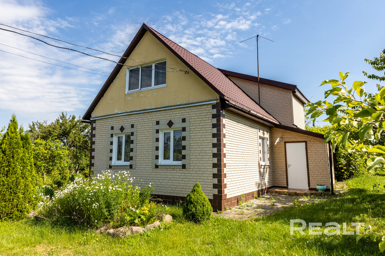 Дом построен из газосиликатных блоков, снаружи обшит сайдингом, изнутри вагонкой, расположен на участке 7,5 соток, второй участок 7,5 соток расположен через дорогу где растут плодовые деревья и кусты: яблони, груши, абрикосы, черешня, малина, паречка