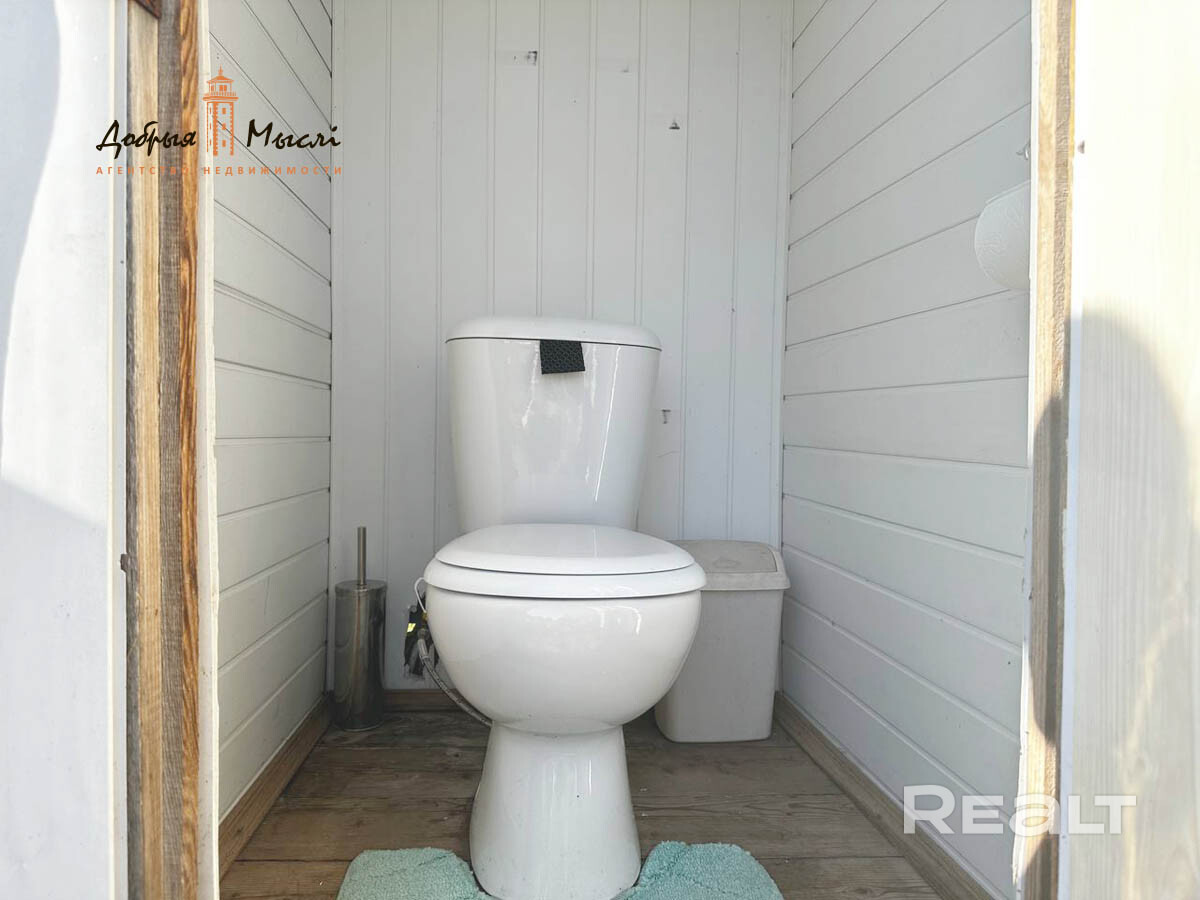 На участке есть колодец и скважина. Местная канализация. Туалет находится на улице. Рядом с домом душ с горячей водой. На участке располагается гараж с подвалом. Беседка находится у входа в дом. Детская площадка.