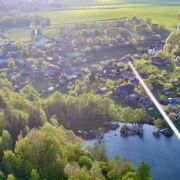 Сразу за деревней находится жилой массив и разлив реки Дубровки.