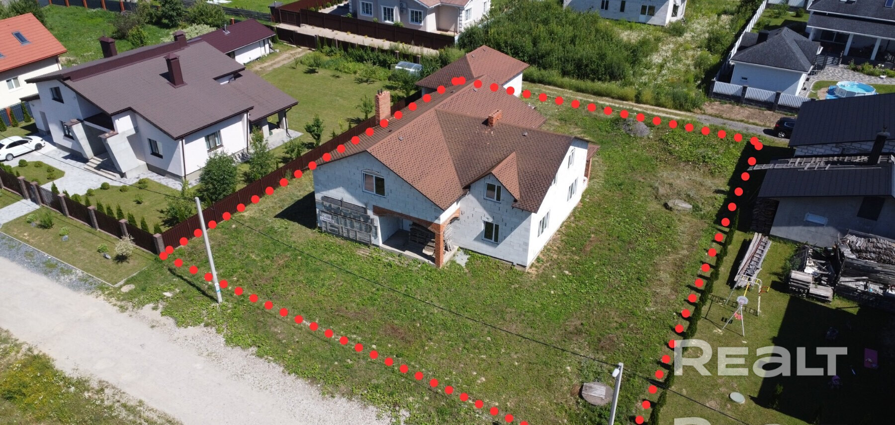 Дом (незавершенное капитальное строение) площадью 247 м2 двухэтажный. Возведены стены из газосиликатных блоков, залиты черновые полы, крыша утеплена и подшита. На второй этаж ведет бетонная монолитная лестница. Установлены двухкамерные стеклопакеты. На первом этаже разведены трубы канализации. Оптоволокно введено в дом. Есть возможность установить на первом и втором этаже камины.