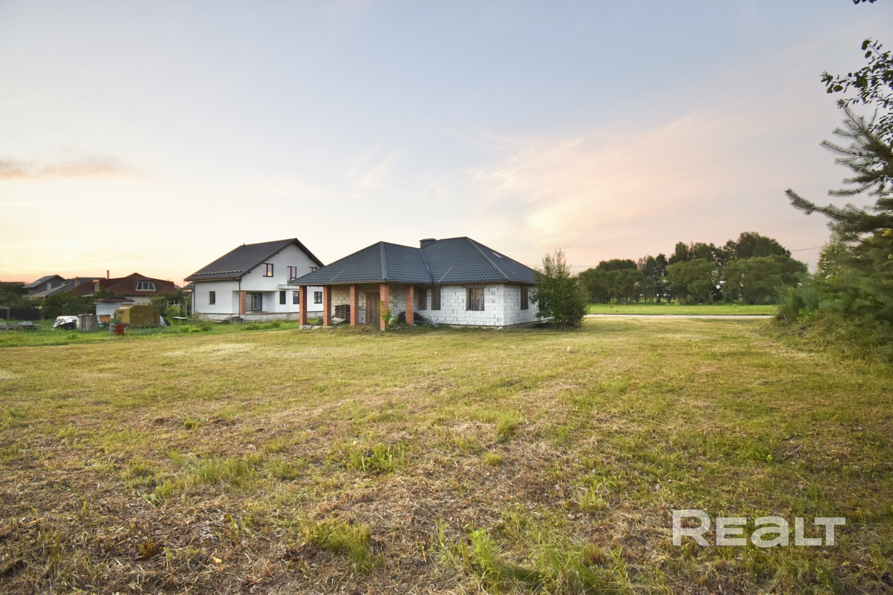 Дом (незавершенное капитальное строение) площадью 230м2 одноэтажный, полностью возведены стены (силикатные блоки), крыша накрыта металлочерепицей, отсыпан песчаный пол, сохранены строительные материалы.
