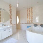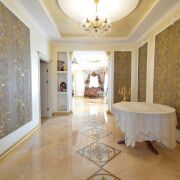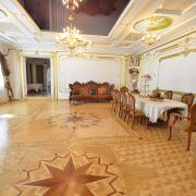 Дом построен из высококачественных материалов в 2017 году. Общая площадь 452м2. Внутренне пространство дома включает: банкетный зал площадью 72,3м2 в дизайне интерьера используется липнина, художественный паркет (дворцовый), бронзовые люстры, мебель из массива (Италия), а также кухня с современным оборудованием площадью 32,3м2 выполненная в элегантном стиле с гранитными столешницами и встроенной техникой.