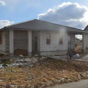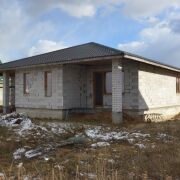 Фундамент - ленточный, стены газосиликат, залит армопояс - поверх смонтированы плиты, потолок утеплен ватой - 200мм, кровля - металлочерепица, алюма-цинк 0.5 толщина, гарантия 25 лет на металл.