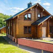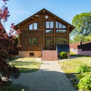 Прекрасный образец загородной недвижимости: технологичный коттедж из профилированного бруса (долговечный и практичный материал).