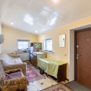 В доме 3 жилые комнаты площадью 8 кв.м., 7.8 кв.м и просторная гостиная - 24.1 кв.м., кухня, прихожая, веранда, есть оборудованный душ. Также имеется вместительная кладовая с погребом.