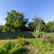 Большой, ровный участок 15 соток, два въезда, откатные ворота, заезд для авто отсыпан щебнем. На участке газон и плодовые деревья.