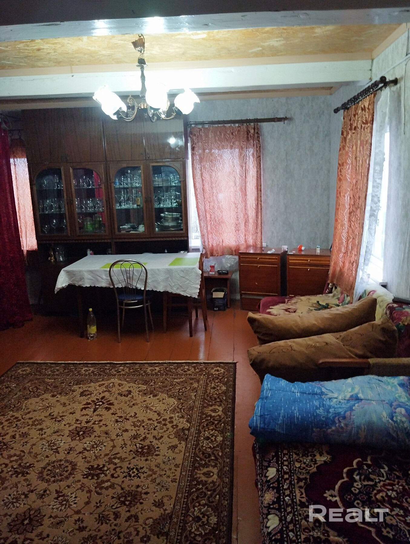 В доме 2 действующие печки. Одна новая. Окна ПВХ. Состояние дома как внутри, так и снаружи удовлетворительное. Есть отдельный погреб рядом с домом. Гараж, теплица, беседка, качели, летний душ, хозпостройки. Свой колодец. Вода от колодца проведена в дом. Слуцкое направление, 58 км до МКАД. До г. Узда 5 км (там Районная больница, бассейн на 25 метров, магазины и т.д.)
