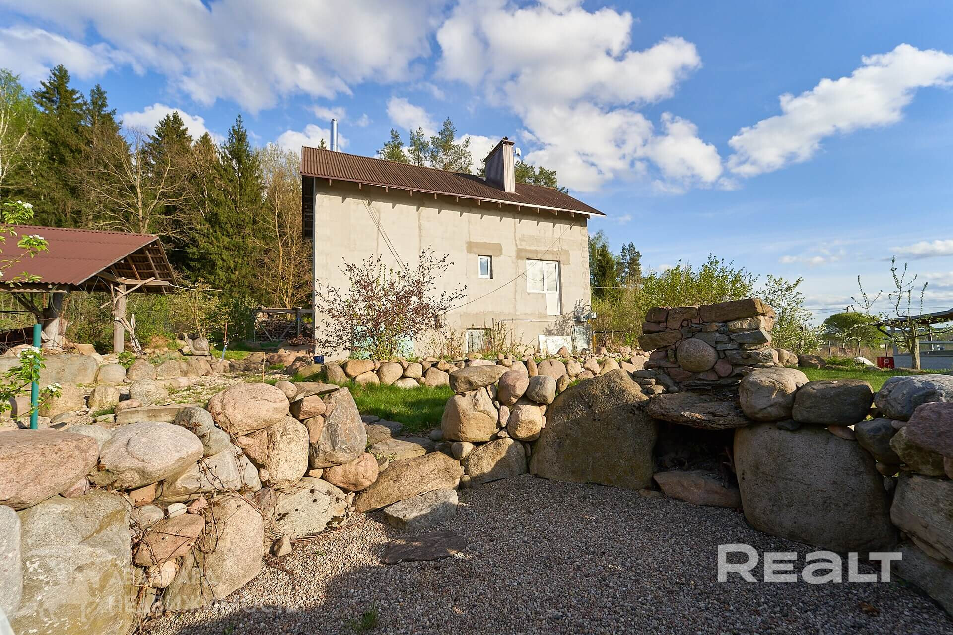 На участке выполнен ландшафтный дизайн с применением камня. Уложен «актикрот». Есть хозпостройка под хранение инвентаря и др. Крытая беседка с печью и подогреваемой купелью. Открытая площадка для отдыха и загорания, выложенная камнем для защиты от ветра.