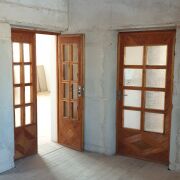 — Полы — деревянная доска. Камин, зал оклеен обоями.