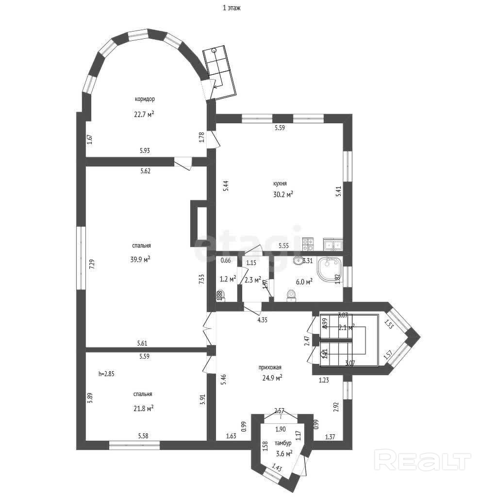 Общая площадь- 275 м2/жилая -166 м2, подвал+2 уровня.— Стены в 2 кирпича (толщина 0,5 м), подвал под всем домом.