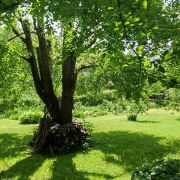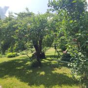 На участке есть плодовые и декоративные деревья и кустарники, что, в свою очередь, создают "живую изгородь" и дополнительное уединение на участке.
