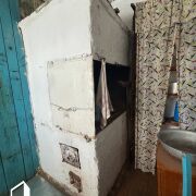 Две комнаты. Отопление печное (газ идёт по улице). Окна, полы и двери деревянные. Крыша шиферная.