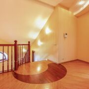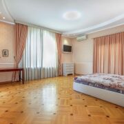 - На 2-ом этаже располагаются: спальни с King-size кроватями, рабочий кабинет с мебелью из дерева и кожаным диваном, 2 санузла, один из них с ванной, душевой кабиной и биде, гардеробные для удобного хранения одежды и обуви. Из жилой комнаты есть выход на балкон, откуда открывается красивый вид на зеленую зону, где Вы сможете наблюдать за красивыми закатами.