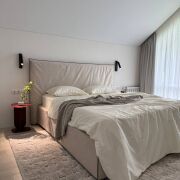 Максимально продумана до мелочей архитектура, планировка и дизайн. 4 спальни: хозяйская мастер с балконом и 2 детские с гардеробными, гостевая или кабинет на 1этаже, кухня-гостиная с выходом на террасу, 2 с/у и топочная.