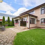 Трёхэтажный дом 2014 г.п. (реконструкция 2017 г.) площадью 355,8 кв.м., общая площадь 332,2 кв.м., жилая 84,6 кв.м. Высота помещений от 2,85 м до 3,20 м. Навес для машин. Гараж. Большая беседка для круглогодичного использования площадью 105 кв.м.