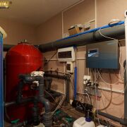 Инженерное оснащение: отопление газовое; вода – скважина, канализация – местная; кондиционеры во всех комнатах, в зоне СПА вентиляционная установка и осушитель. Видеонаблюдение, видеодомофон.