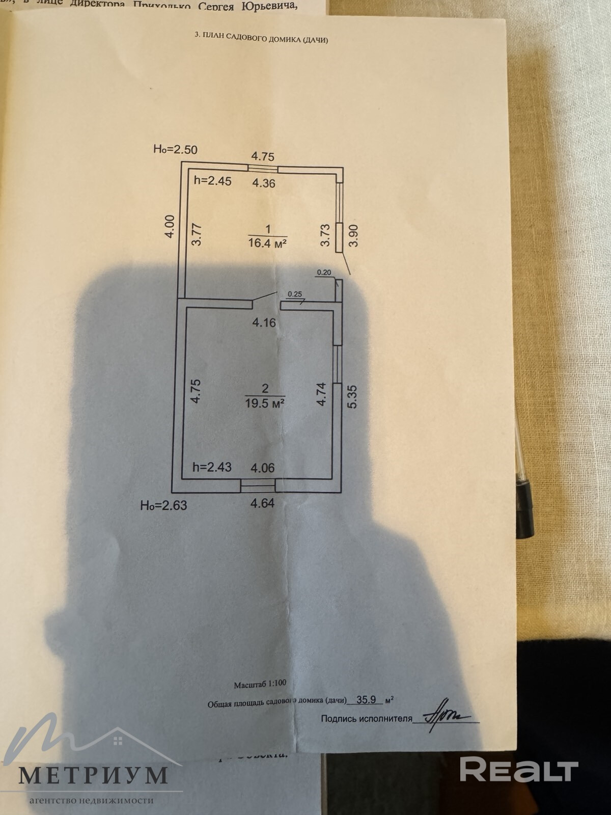 Участок правильной геометрической формы 8 соток. Дом 35.9 кв.м. кирпичный, одноэтажный. В частной собственности. Отопление печное, электричество проведено во всех комнатах, вода сезонная, подвал для хранения закаток. В доме оборудована просторная жилая комната, коридор и кухня. Санузел на улице.