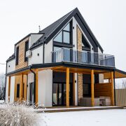 Коттедж построен на армированном фундаменте ленточного типа. Стены – блок газобетон (наружные стены толщиной 400мм). Фасад здания утеплен минеральной ватой 10см Paroc, оштукатурен и покрашен. Утепление кровли - минеральная вата 250мм.