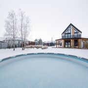 Расположен в элитной коттеджной застройке (20 км от МКАД), в живописном месте, рядом с горнолыжными курортами Силичи и Логойск.