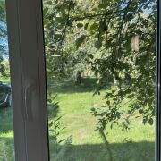 - Окна — новые стеклопакеты, пол — плитка и доска